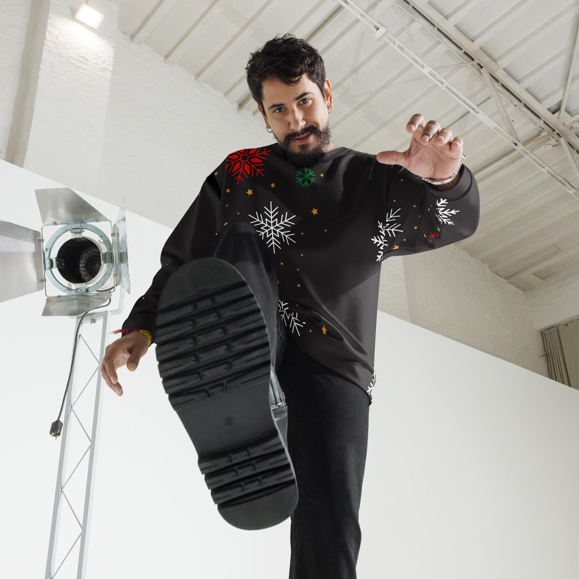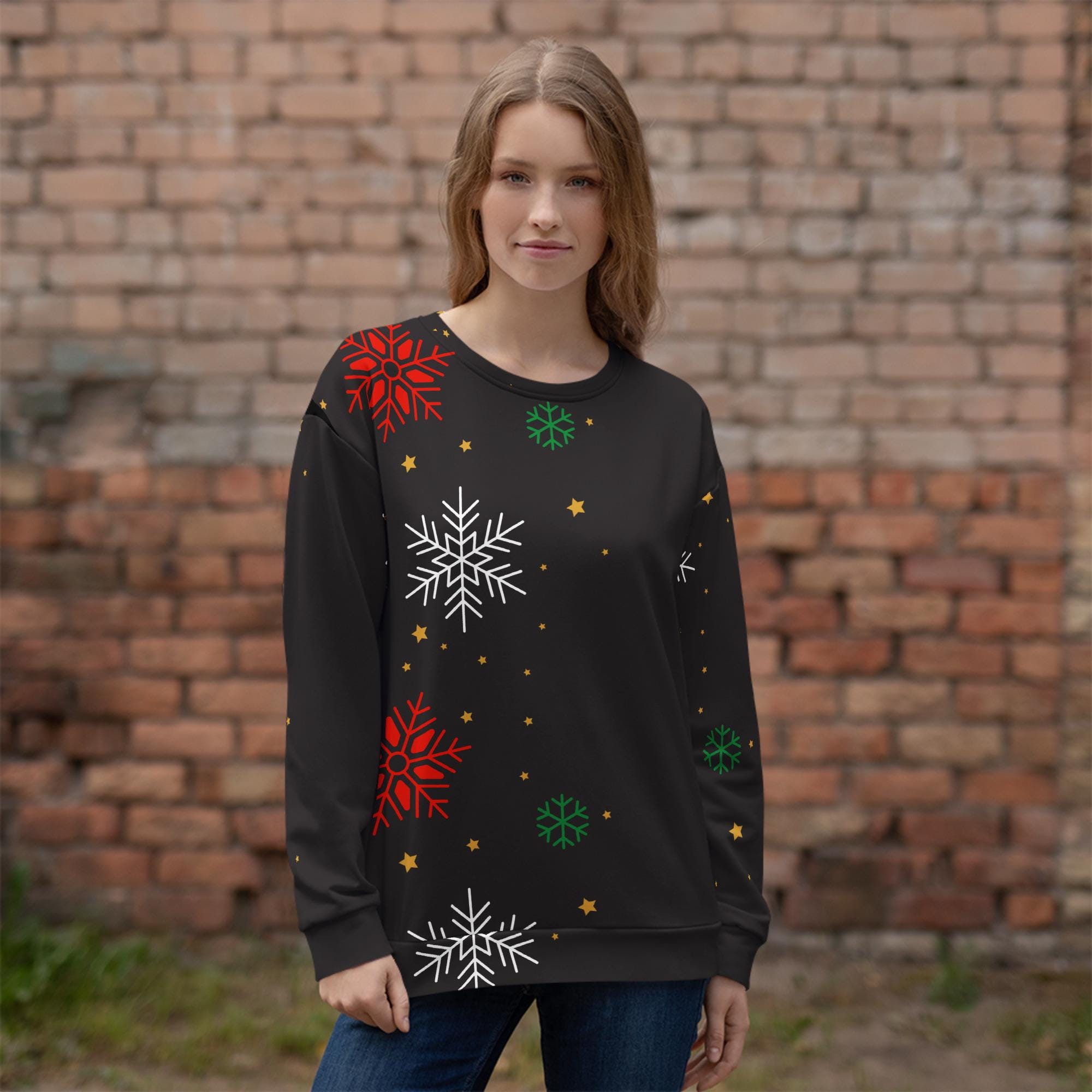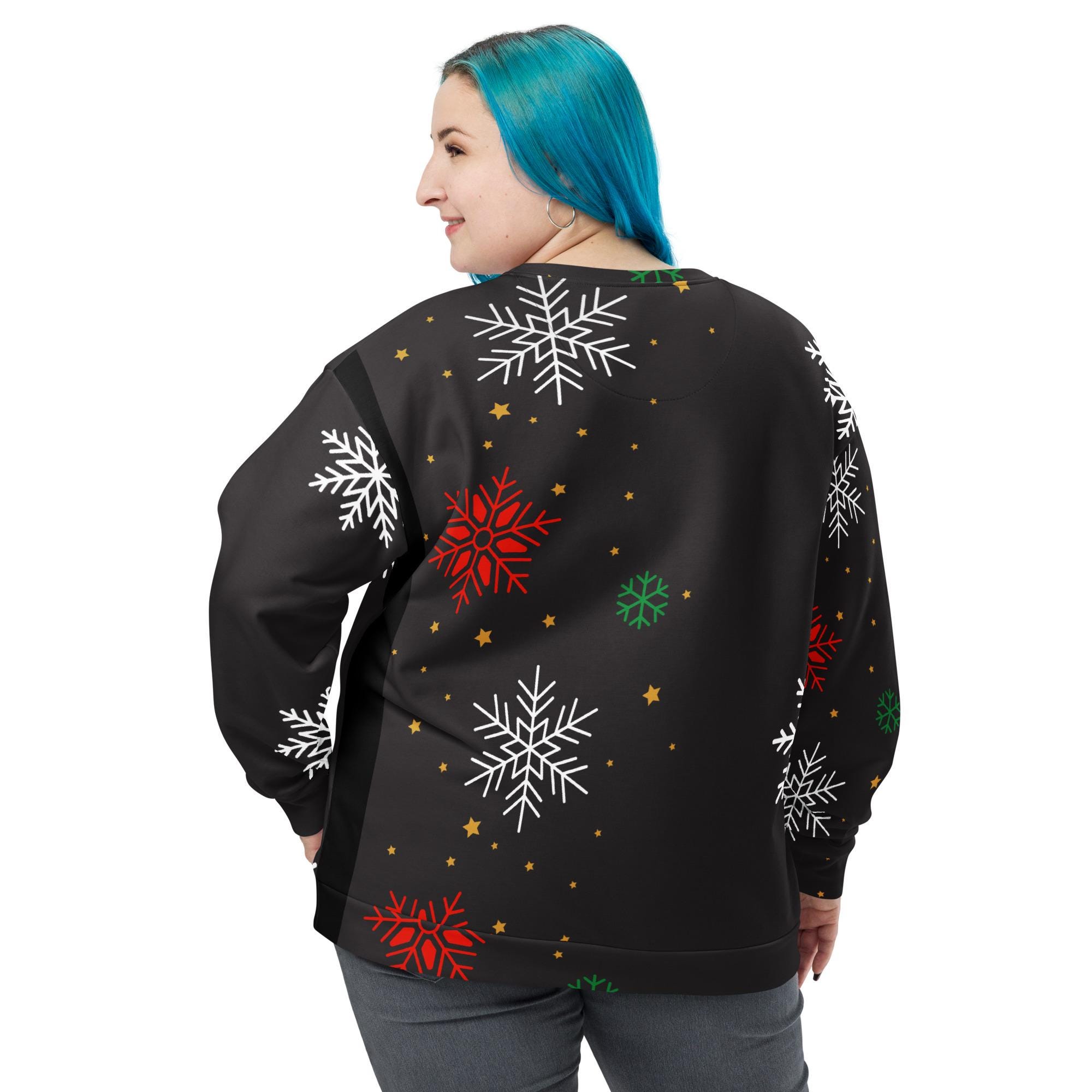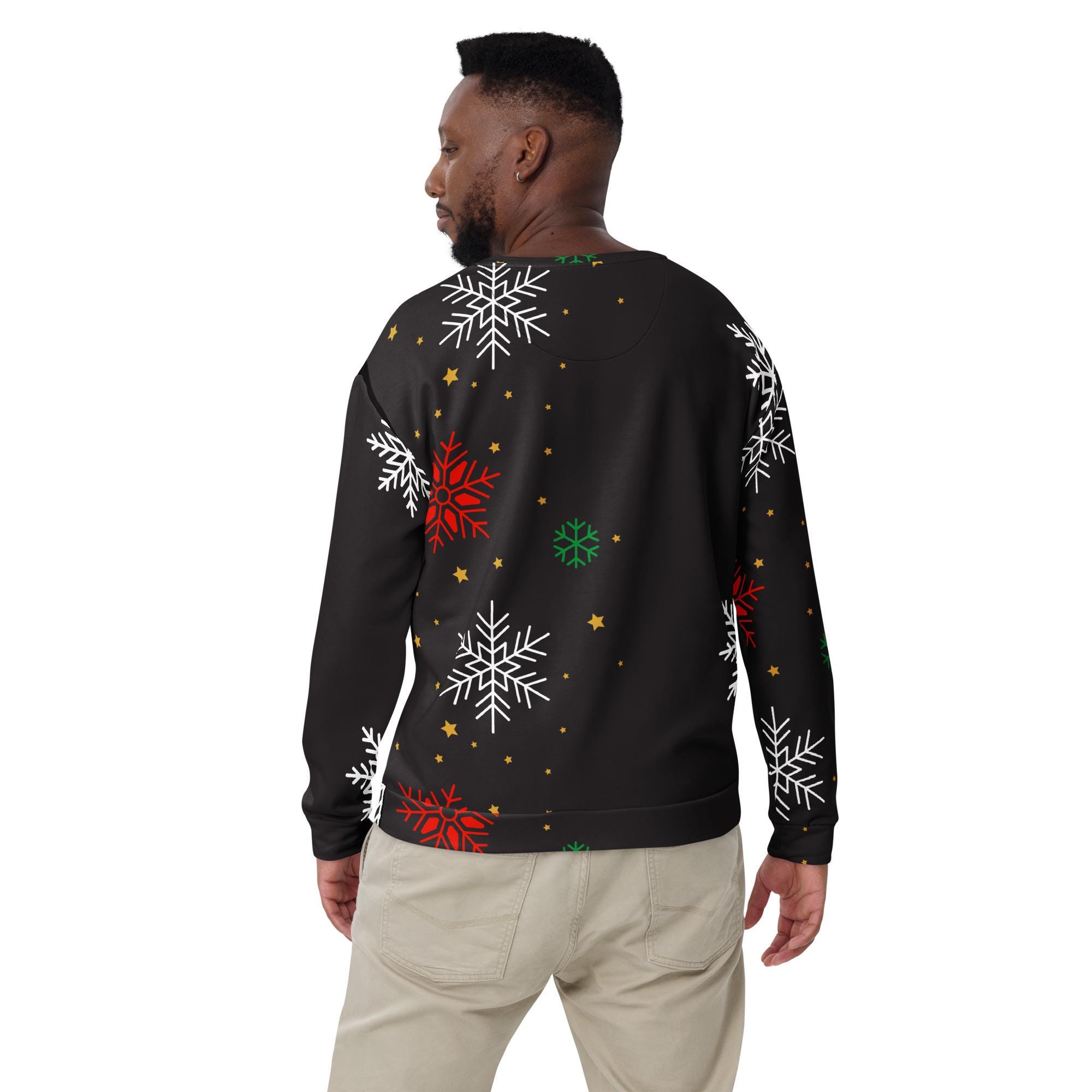 Bring winter magic into your wardrobe with this Christmas Snowflake Sweatshirt! Featuring a festive all-over snowflake pattern on a sleek black background, this cozy pullover is perfect for holiday parties, lounging by the fire, or gifting to someone special. The unisex fit makes it a versatile piece that’s just as stylish with jeans as it is comfy with joggers.