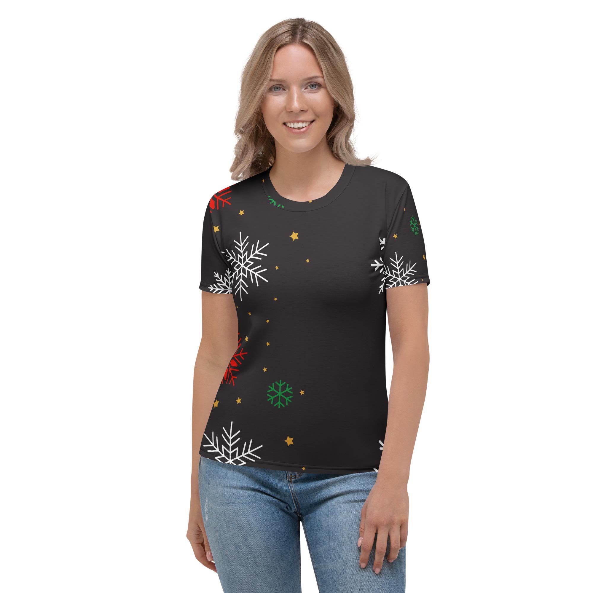 Step into the holidays in style with this Christmas Snowflake T-Shirt. Featuring a striking all-over snowflake pattern on a classic black background, this festive tee is designed to keep you looking sharp and feeling comfortable from morning gift exchanges to evening holiday parties.