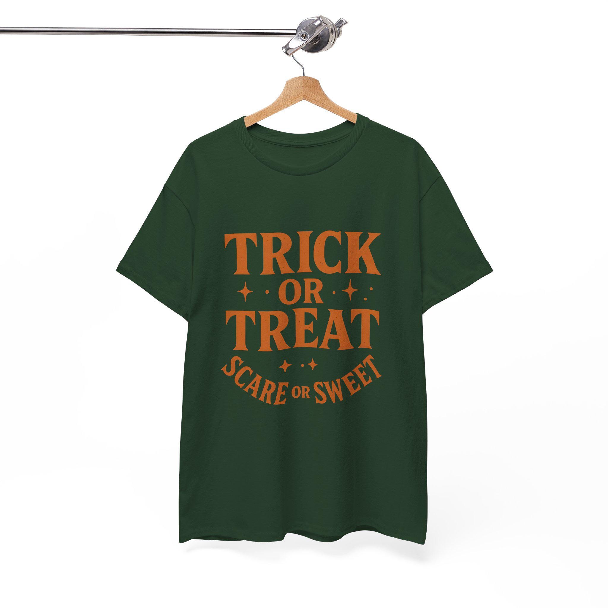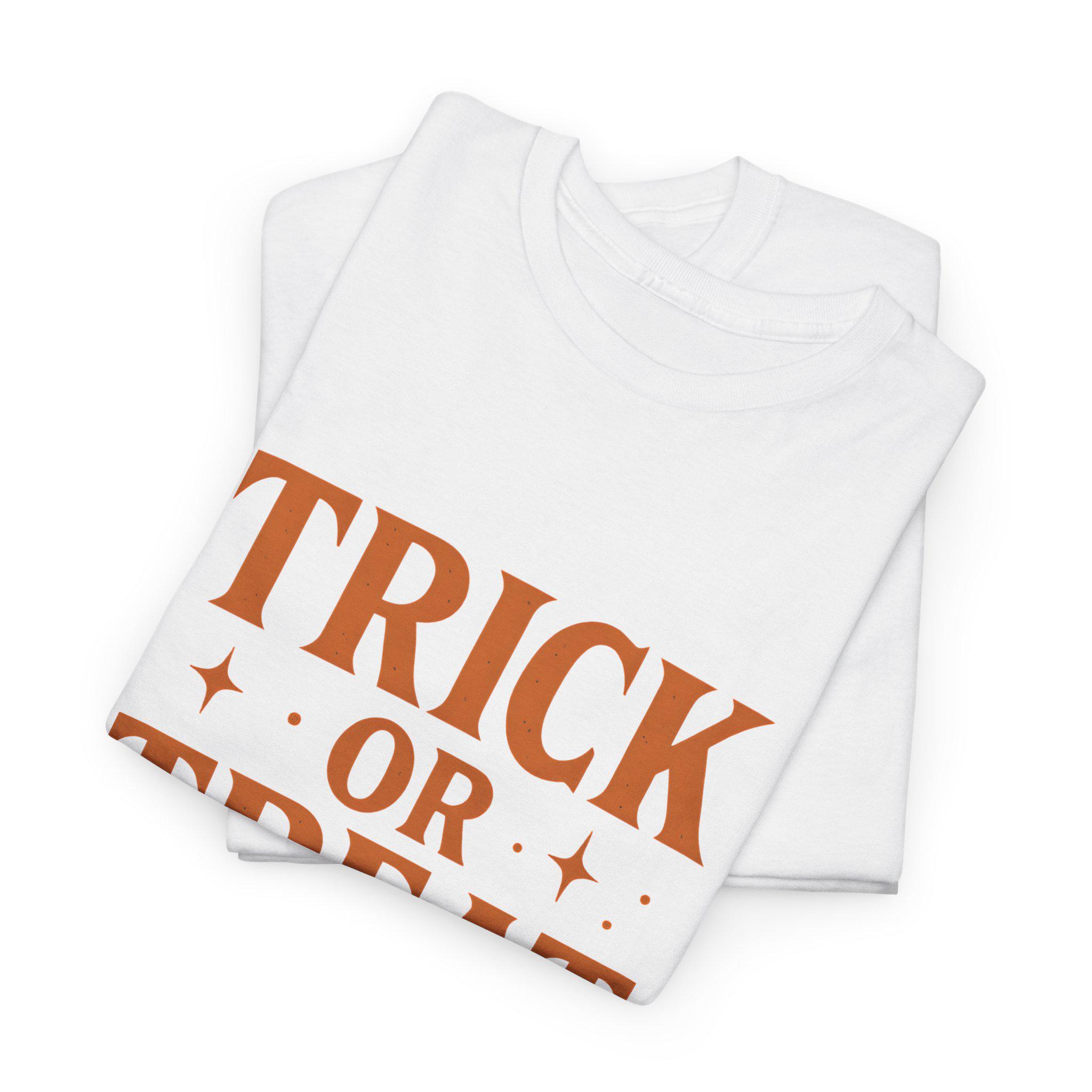 Elevate your casual wardrobe with this Unisex Heavy Cotton Tee, perfect for those who enjoy comfort with a dash of personality. This shirt brings a festive vibe to your outings, especially during Halloween with its playful 'Trick or Treat' design that captures the spirit of the season. It's not just an item of clothing; it’s an expression of fun and creativity. Tailored for adults, this tee is suitable for casual gatherings, parties, or simply lounging at home. It's a fantastic gift for friends and family who cherish unique seasonal apparel and are ready to embrace the festive cheer. Whether you’re out trick-or-treating, attending a Halloween party, or just celebrating the spooky season, this tee adds a cheerful touch to any outfit. Get ready to share some smiles and good vibes!